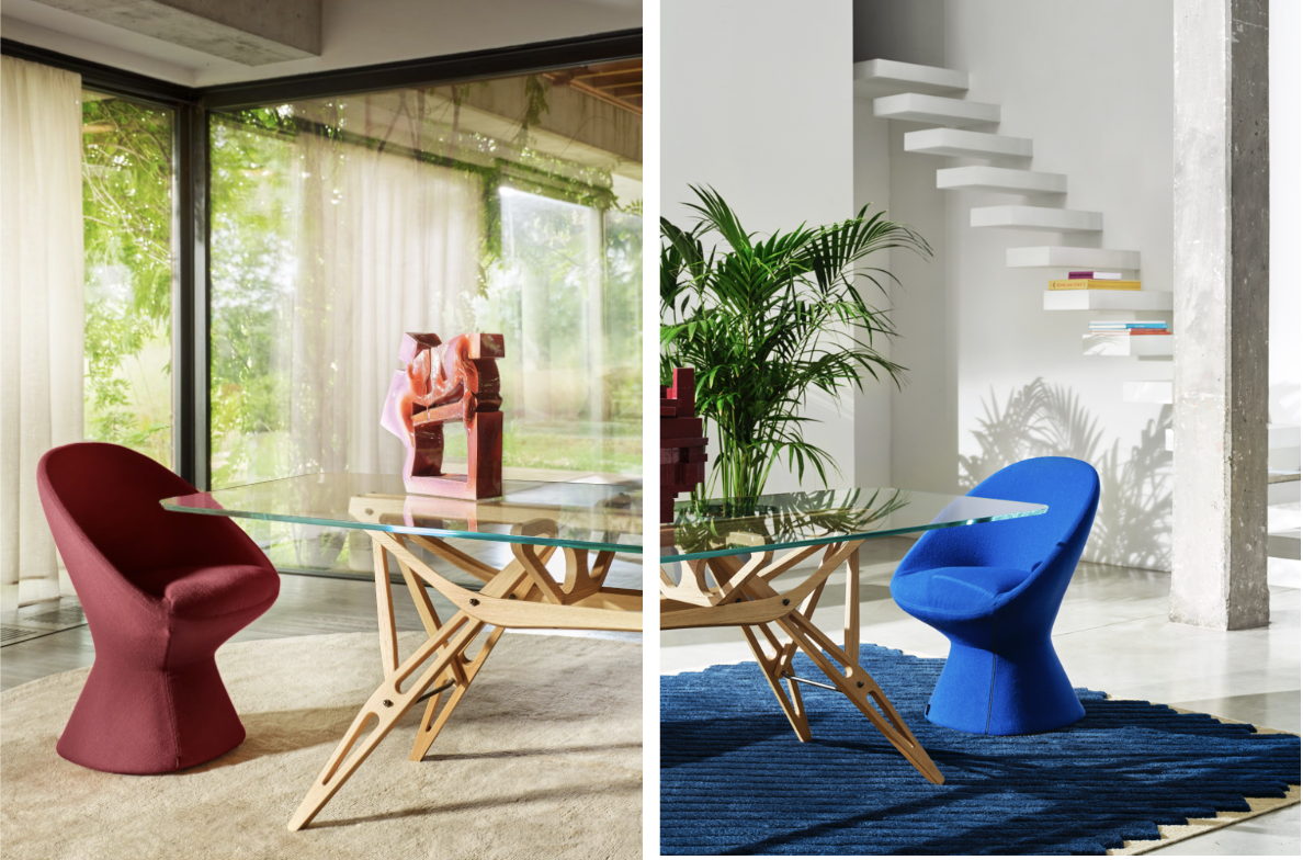 Together, these three pieces embody a unified design language in which balance, comfort and personality converge, expressing the essence of Zanotta’s distinctive style.