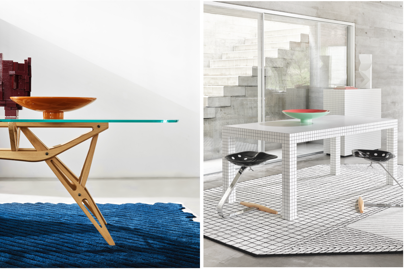 Finally, Mendini’s Dealbata vases (9550-9551-9552) remain true miniature sculptures in glazed ceramic, available in the classic white finish or a vibrant glossy orange, perfect for the festive season.